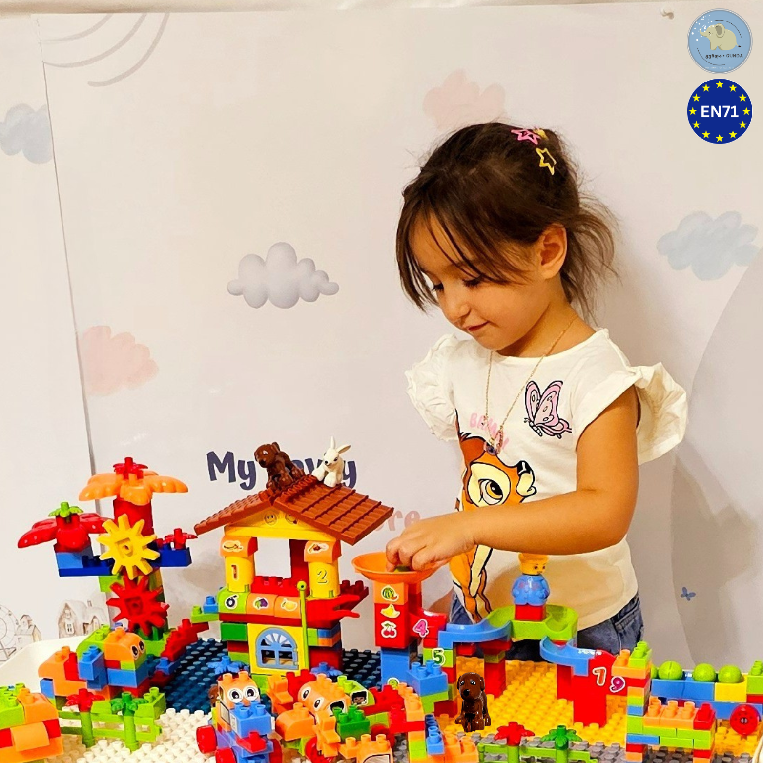 - ბავშვს შეუძლია ააწყოს – სახლი, ხეები, მანქანები, თვითმფრინავები, სასრიალო და სხვადასხვა ზომის ცხოველები.