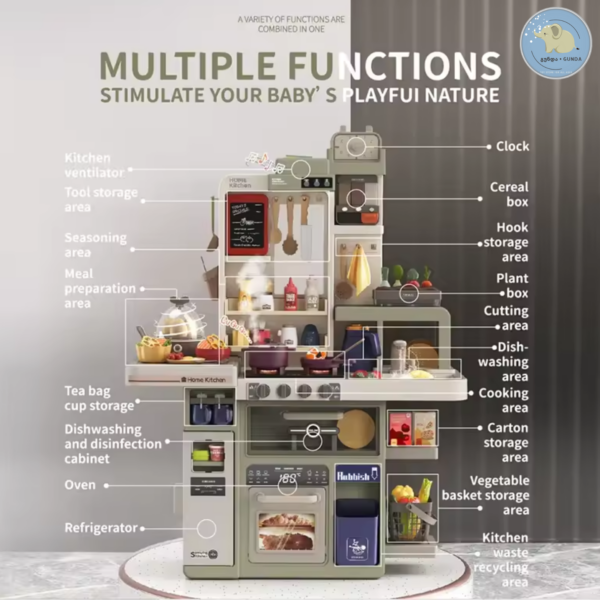 - ტიპი: დიდი ზომის საბავშვო სამზარეულო, მრავალფუნქციური სათამაშო სამზარეულო